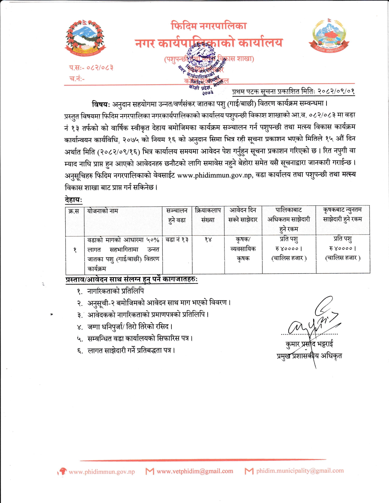 पशुपन्छी विकास क्षेत्रको कार्यक्रमको सूचना प्रकाशन गरिएको बारे
