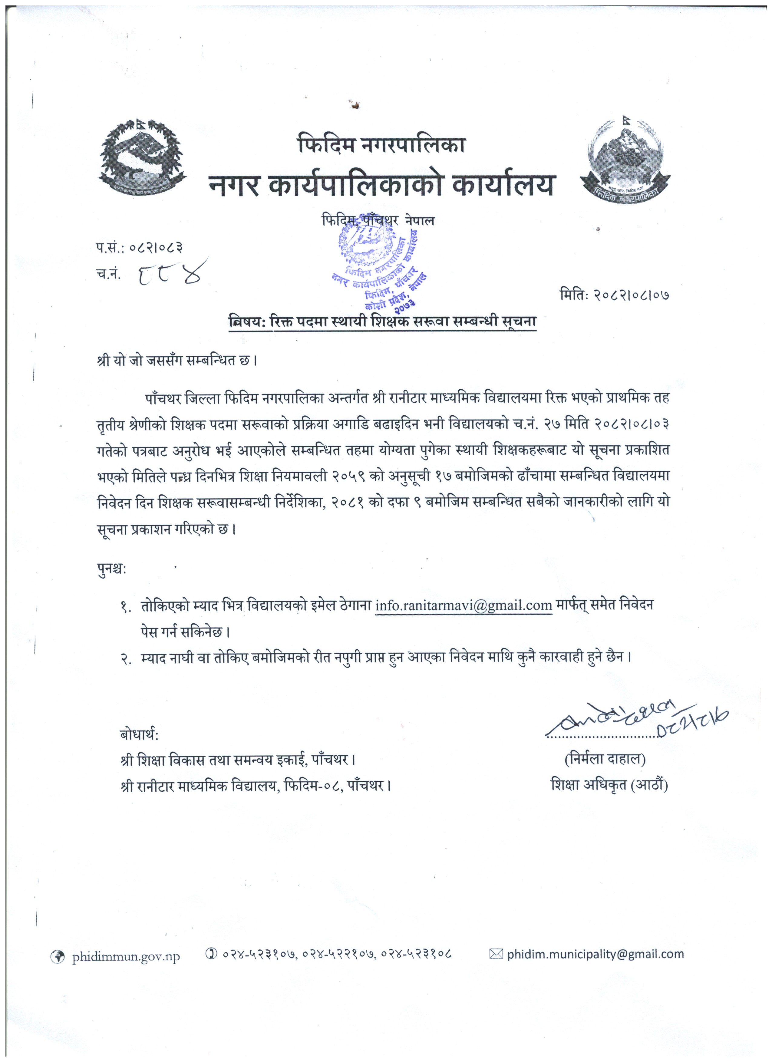» रिक्त पदमा स्थायी शिक्षक सम्बन्धी सूचना