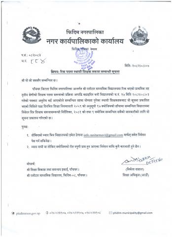 रिक्त पदमा स्थायी शिक्षक सम्बन्धी सूचना