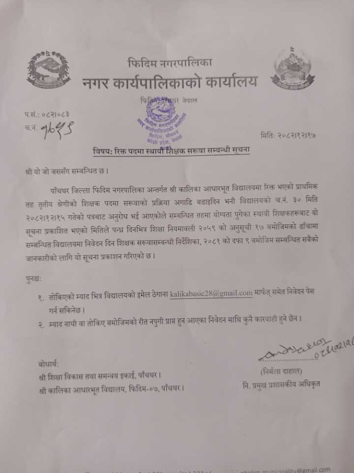रिक्त पदमा स्थायी शिक्षक सरुवा सम्बन्धी सूचना