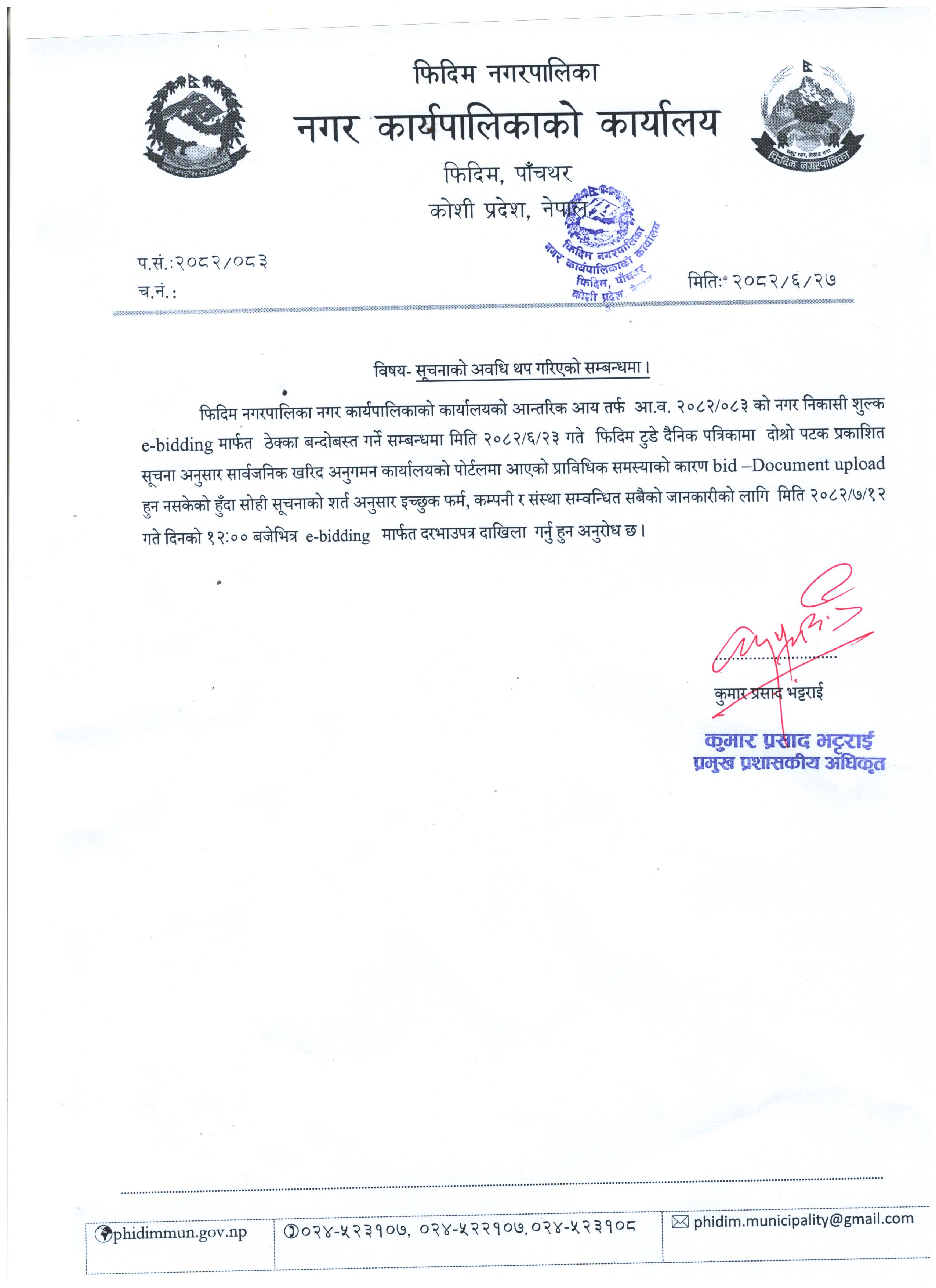 सूचनाको अवधि थप गरिएको सम्बन्धमा